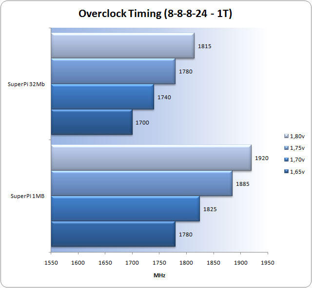 Grafico Overclock e stabilità (8-8-8-24 – 1T)